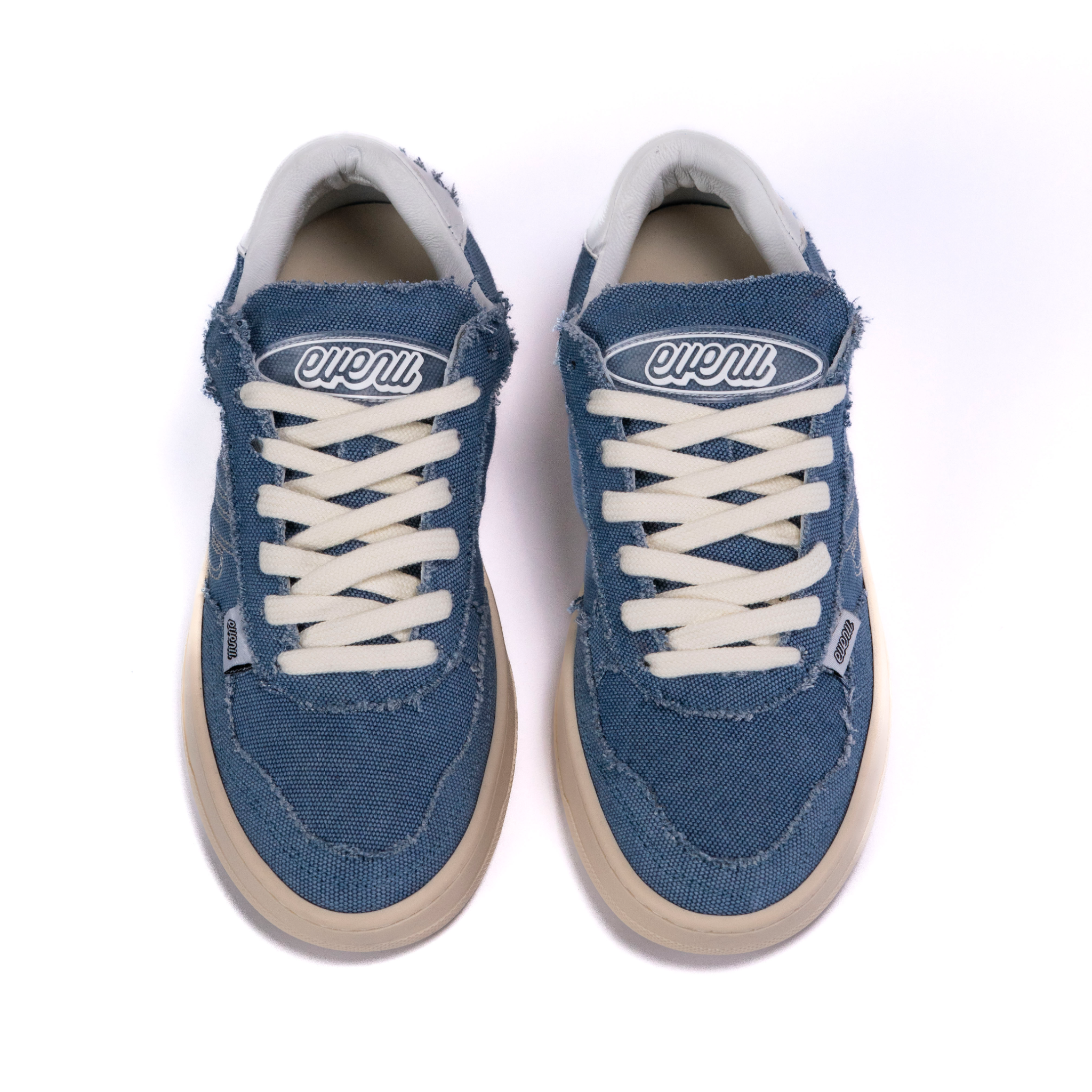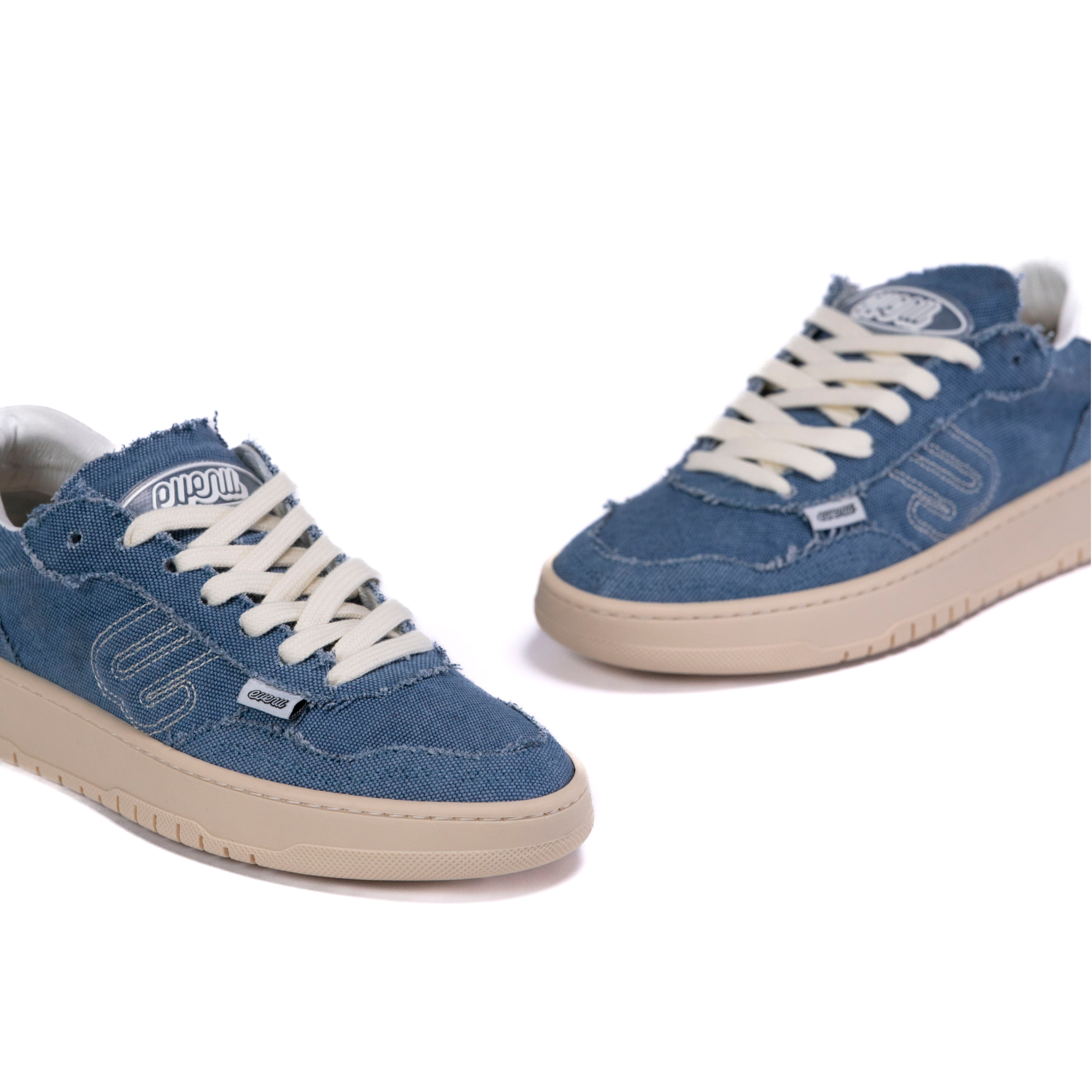 Tela denim con retro in pelle bianca